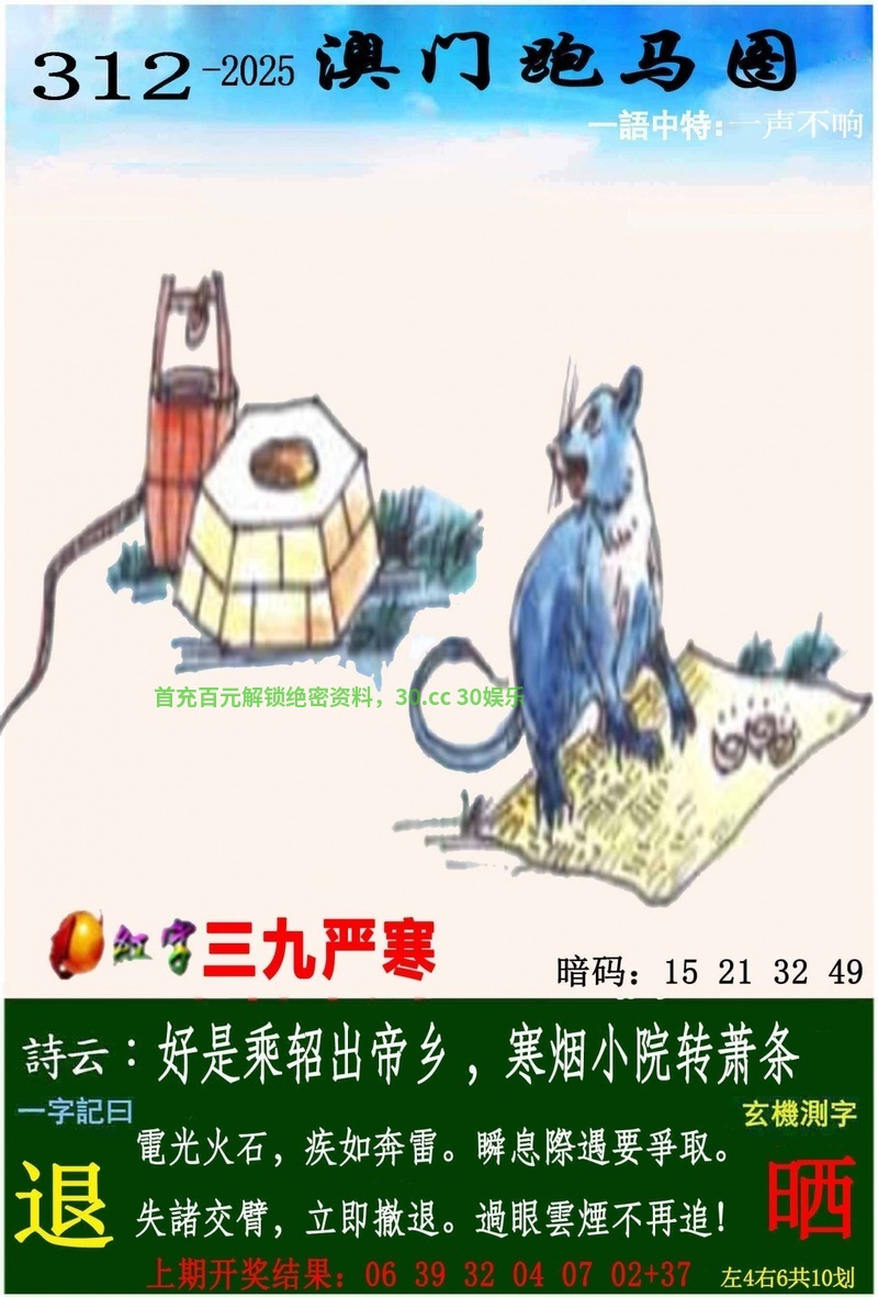 | 309期吉凶二肖『凶丑+龙鸡』开:鼠06准 |